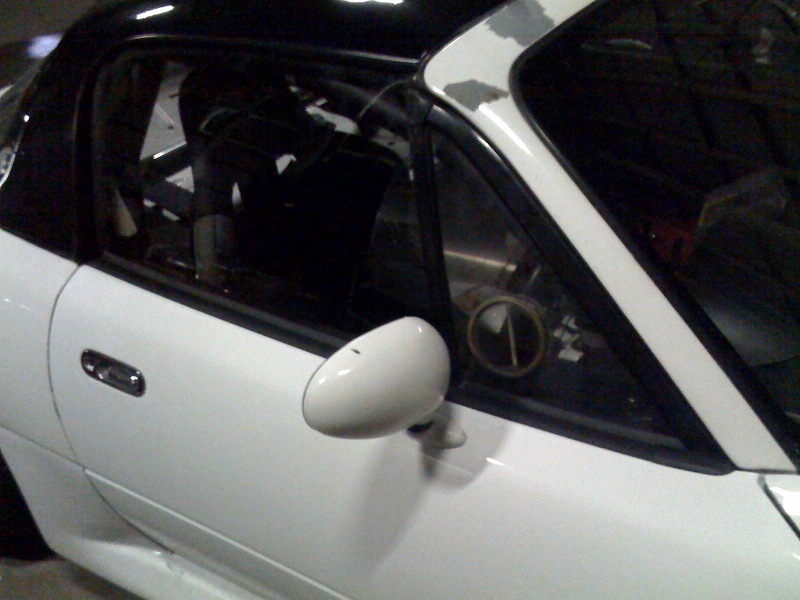 気になる重量は、このあとドアの鉄板も穴だらけにすれば、R1GPまでの人間の軽量化目標数値くらいはクルマのほうで軽くなってくれそうです。